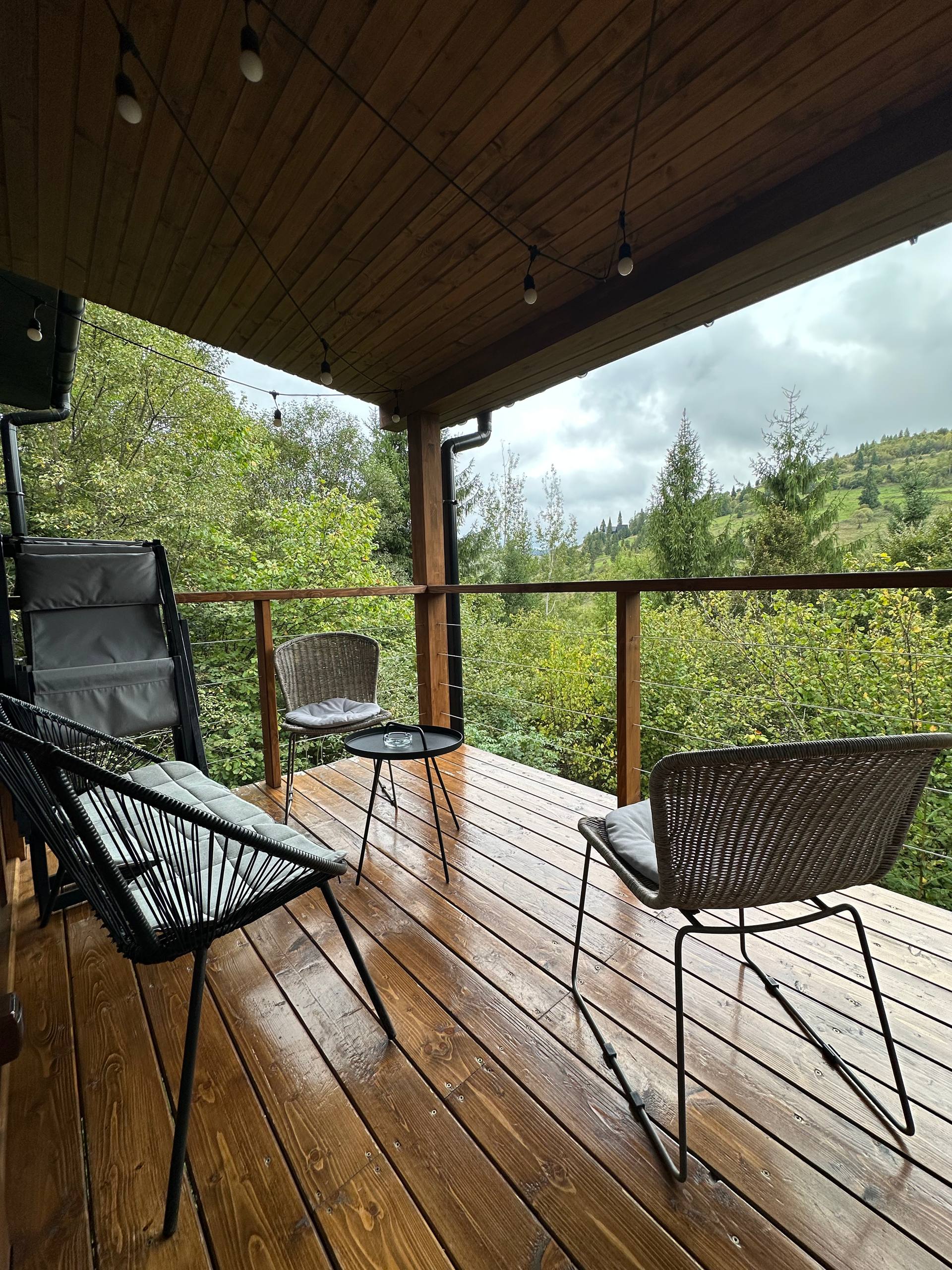З вітальні ви можете потрапити на велику та затишну терасу. Відпочинок в Карпатах з каміном стане для вас незабутньою пригодою з приємними спогадами.